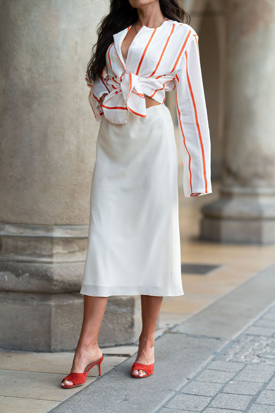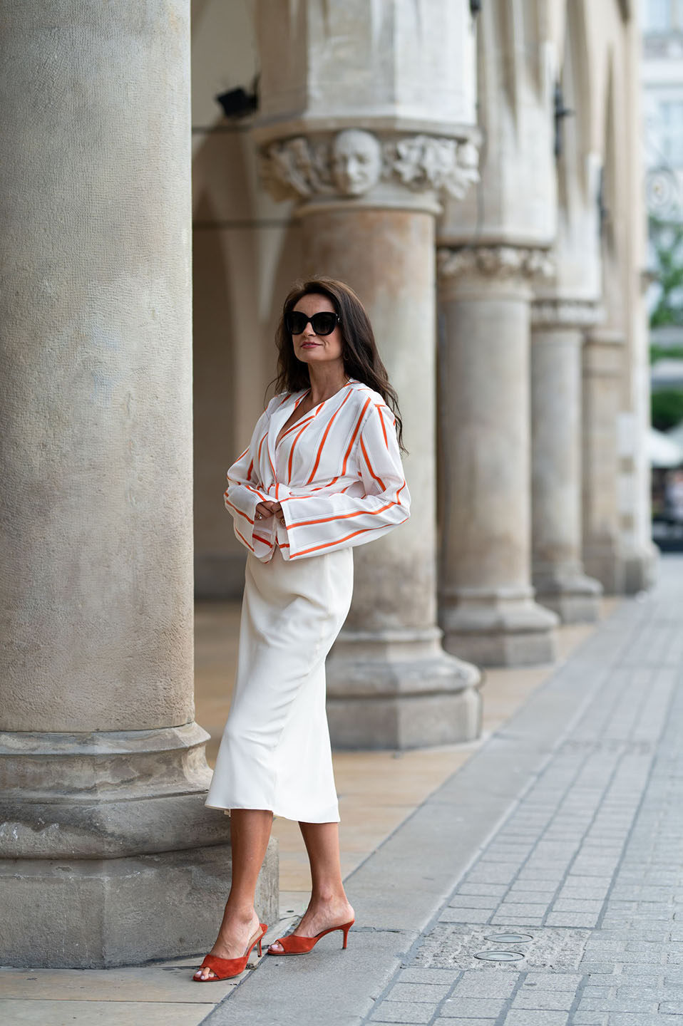 Modelka ma 172 cm wzrostu i nosi rozmiar 36.