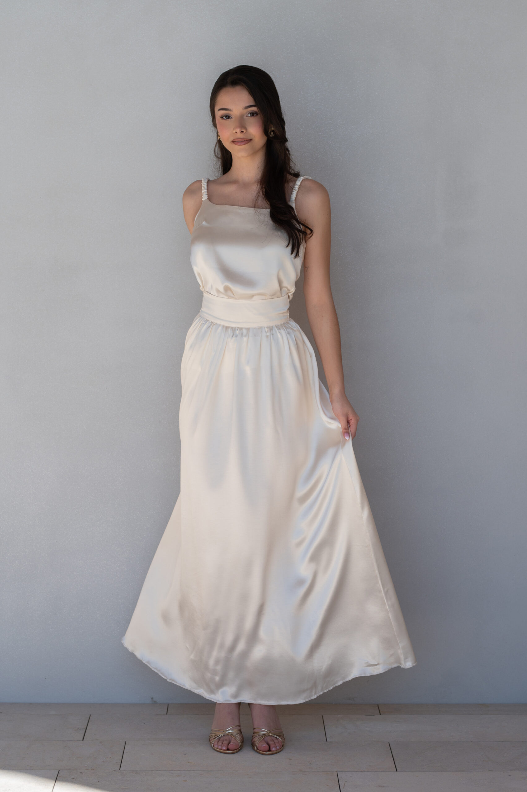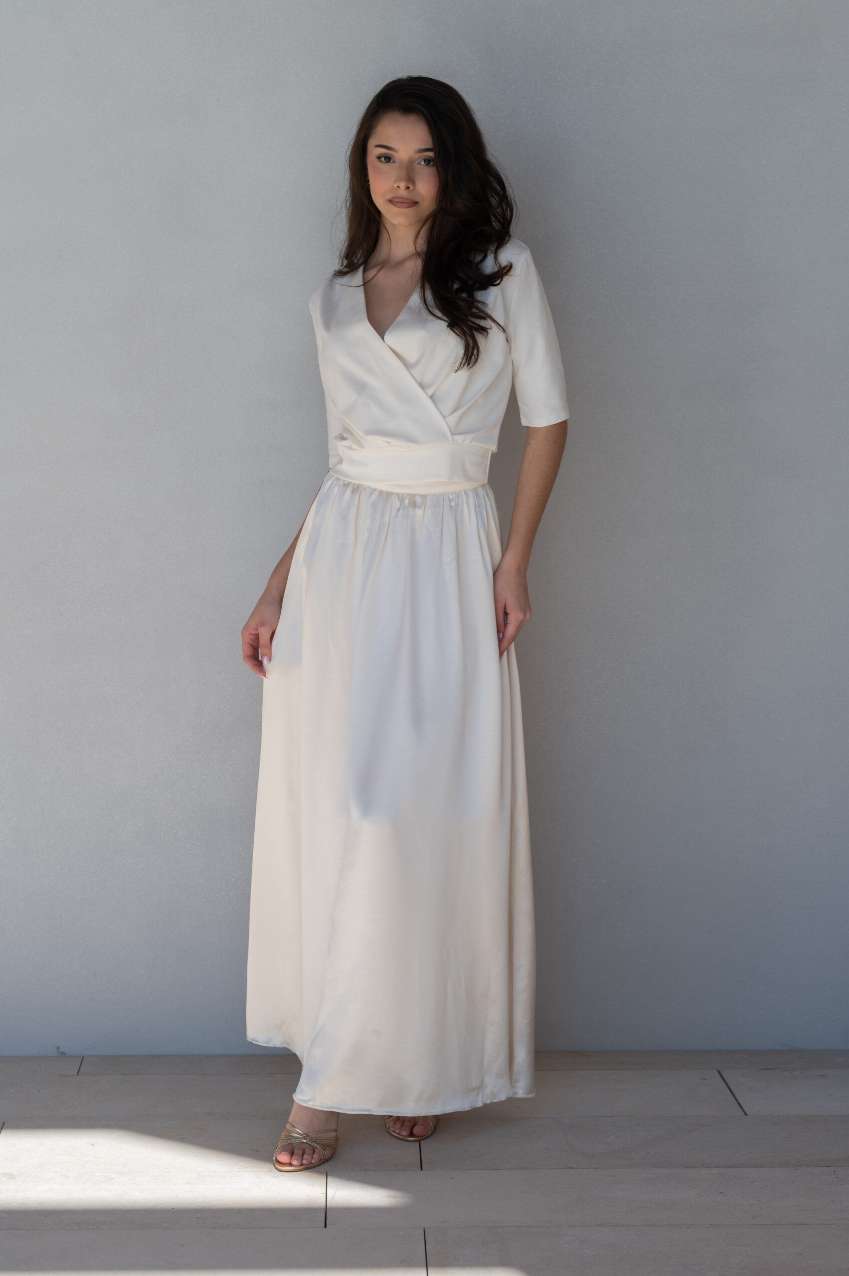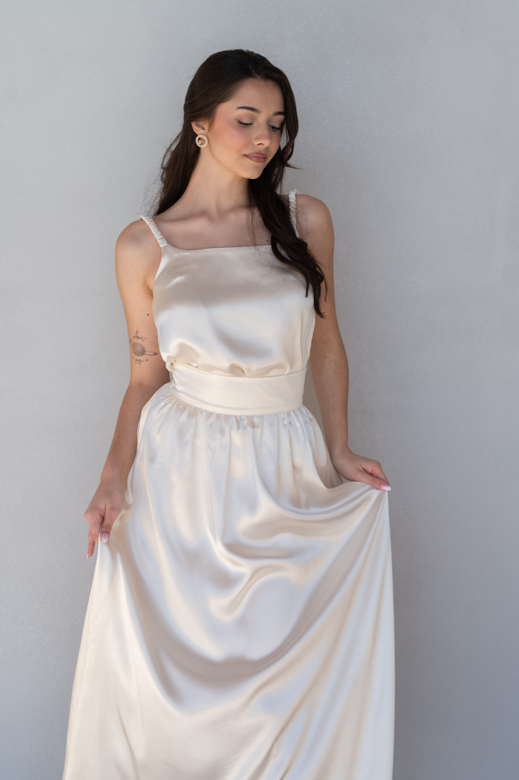 Detale: Włoska satyna wiskozowa premium z rayonem. Wygląda jak gruby satynowy jedwab,